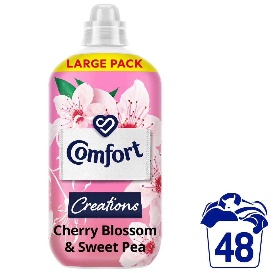 We know you love your clothes. We love clothes too, and we want to help you to care for them. That’s why we’ve developed Comfort Creations Cherry Blossom & Sweet Pea Fabric Conditioner to keep clothes fresh and clean long after each wash. Our fabric softener features Stay Fresh technology, designed to lock in fragrance, to deliver 100 days of freshness + fragrance*. This fabric softener features the sensational long-lasting fragrance of floral cherry blossom and rose with a fruity peach base to leave your clothes smelling fragrant and clean. The Comfort Fabric Conditioner bottle is made of 100% recycled plastic and is 100% recyclable**. How to use: Dose straight into your washing machine drawer. Do not pour directly onto fabrics. Wash hands after use. You do not need to dilute. Add Comfort to your wash to help protect your clothes and leave you feeling great inside and outside every day. Comfort is the original fabric conditioner in the UK and has been caring for clothes for over 50 years. Comfort Fabric Conditioner also ensures your clothes smell their very best, wash after wash. Together, we can help protect the clothes you love. *After storage and line drying **Recycled plastic bottle excluding cap and sleeve & recyclable excluding sleeve
