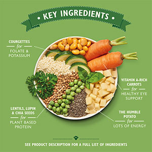Suppertime will still mean bowls full of goodness and wagging tails. Perfectly balanced, vet approved and woofing delicious. Lily’s Kitchen are proud as vegan punch with this tin of plant power.