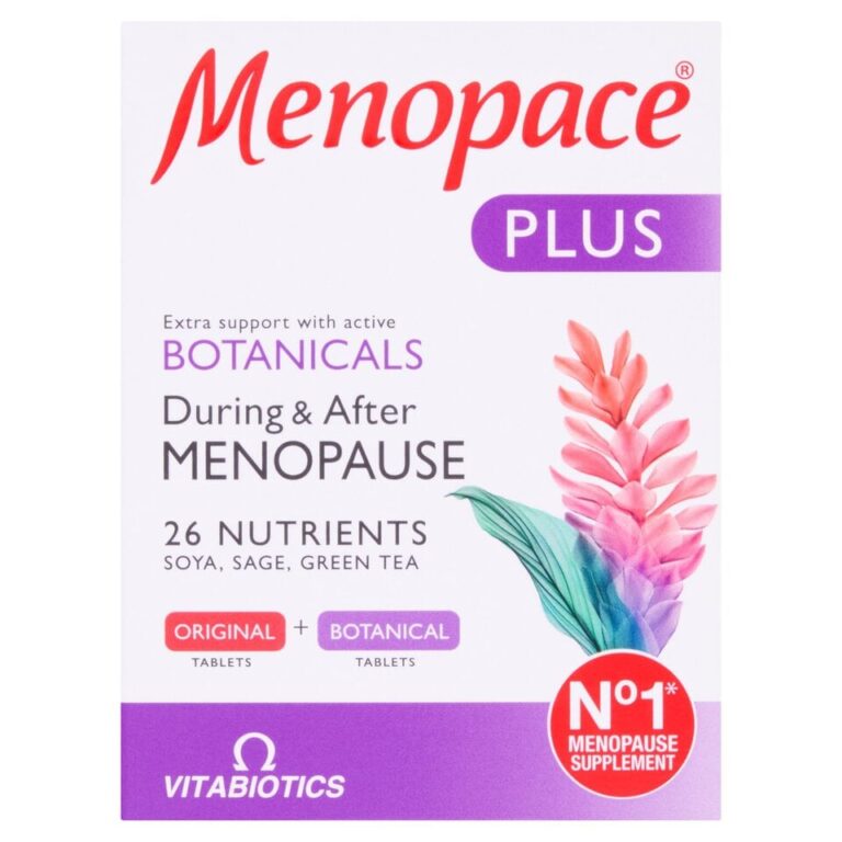 Extra support with active botanicalsDuring & after menopause26 NutrientsSoya, Sage, Green TeaUK’s No.1 VitaminsQueen’s Award – 4 Times WinnerDoes Not Contain Any Drugs or HormonesMenopace is Not Tested on AnimalsNo Gluten, Yeast or GelatinNo Artificial Colours or PreservativesSuitable for Vegetarians