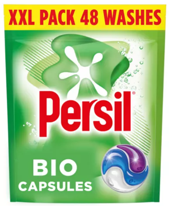 Persil 3 in 1 Bio Capsules remove tough stains first time, even in a quick and cold washUse Persil Laundry Washing Capsules in quick and cold washes and you can save up to 60%* on energy, saving you money on your bills and protecting the planet!Our Persil capsules provide powerful stain removal and are made with naturally derived biodegradable stain removersThe easy-to-use resealable pouches for our laundry capsules use less plastic per wash than our tubs, so you can get tough on stains whilst being kinder to the planetPersil 3 in 1 Bio Washing Capsules reduce bobbles* – simply throw in 1-2 capsules (depending on load size)Our mega refill packs each contain enough washing capsules for up to 48 washes, perfect for families