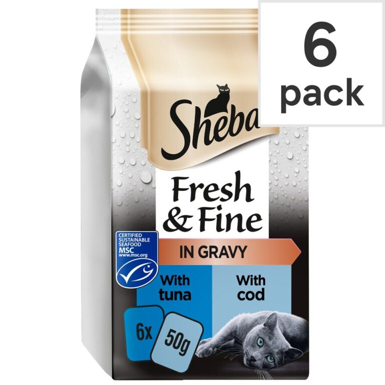 With the Sheba®Fresh & Fine cat food range it’s easy to give your cat the tastes they love with a fine combination of delicate pieces providing complete nutrition for your feline companion. Made from select ingredients with no artificial colours or preservatives, a wonderful way to bring you and your feline friend closer at mealtimes. Available in 50g cat food pouches. Suitable for all cats over 12 months adult and seniorHigh quality adult Sheba® cat food in gravy providing complete nutrition for your feline companion in handy cat food pouches.Sheba fish cat food comes from an MSC certified sustainable fishery.All Sheba cat recipes have been developed with our nutritionists and veterinarians of Waltham Centre for Pet Nutrition to guarantee 100% complete and balanced nutrition in your wet cat foodOur Sheba cat food pouches have a 100% Recyclable outer wrap, helping preserve our environment